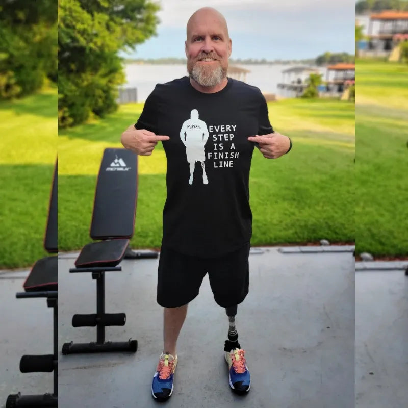 While battling Leiomyosarcoma, a rare form of cancer, for 9+ years, Richie McPeak, cancer amputee warrior is living life to the fullest while inspiring others towards their goals and dreams. Richie cherishes each day with his family and embraces life with the mentality that "Every Step Is A Finish Line." We aim to share this empowering mindset with the world and encourage others to do the same.
